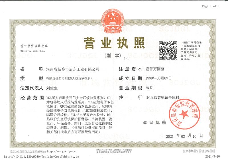 河南省新鄉市啟東工業有限公司始建于1987年,是專注研發、生產自動化儀器儀表(主要與壓力容器、鍋爐等容器配套使用)的廠家。主要產品有液位計(磁敏雙色型、磁翻柱型等)系列、烤包器熄火聯控裝置系列、壓力容器快開門安全聯鎖保護裝置系列、鍋爐報警器系列。二十多年來,公司產品暢銷國內并遠銷俄羅斯、蒙古與東南亞,深得廣大用戶的信賴和好評。我們多年來致力于自動化儀器儀表的研制生產,公司現具有完善的生產、試驗、檢測手段和設備??萍紕撔?、誠信服務,是我們不變的經營理念,我們將以強有力的技術支持及售后竭誠為客戶提供良好的服務?! ?012年我公司成功研發了KCL系列烤包器熄火聯控裝置,并于2013年2月2日榮獲中華人民共和國國家知識產權局辦法的《實用新型**證書》<**號:2021202257735>該產品廣泛應用于唐鋼等大型鋼鐵企業,為烤包器安全作業提供了有力的保障。  2002年我公司成功研發磁敏電子雙色液位計獨特的高亮度LED紅綠雙色顯示,獲得了專家的首肯和用戶的一致好評。在此基礎上我公司研發人員十年磨一劍,致力于XQFB-1防爆型磁敏雙色液位計的研發,于2013年12月27日由國家防爆電器產品質量監督檢驗中心檢驗合格并頒發防爆合格證書<編號:cnex19.0883>。該產品性能得到了充分的發揮,廣泛應用于含有Ⅱ類A·B級T1-T4組可燃氣體或蒸汽與空氣混合形成的爆炸性混合物的0區、1區危險場所。連接用戶DCS或PLC系統實現遠距離集中顯示和控制,從而實現節能、數字化管理。為用戶增加了一定的經濟效益和社會效益,。2014年公司成功申請了夢潤儀表的logo,新的品牌新的形象,夢潤儀表是啟東的LOGO, 歡迎新老用戶前來洽談合作?! ∥覀円蝗缂韧刈⒅乜蒲械耐度?,憑借產品的不斷更新、加大科技含量,進一步拓展市場。我們相信品質成就未來,以過硬質量、優惠價格、完善的售后服務熱忱歡迎廣大客戶來我司視察指導、洽談業務;精誠合作,共創輝煌!